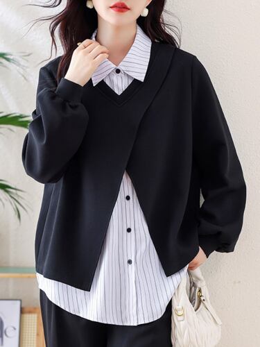初回送料無料 秋冬レディースファッション フェイク2枚 ゆったり オシャレ 着やせ トップス