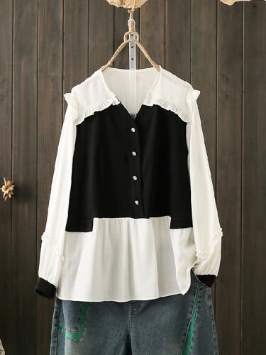 初回送料無料 レディースファッション カジュアル フェイク2枚 パッチワーク 着やせ トップス