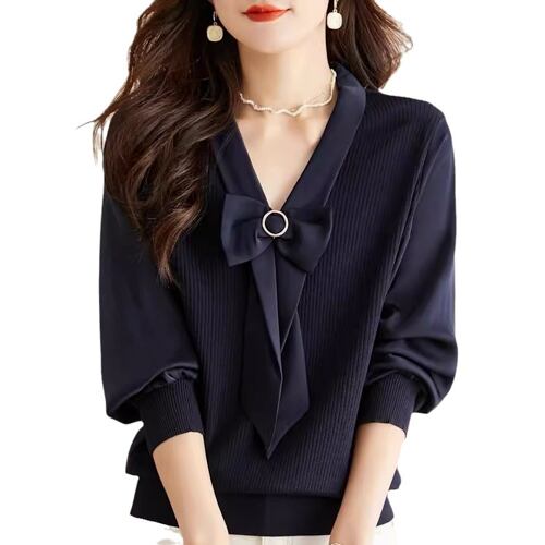 初回送料無料 新作レディースファッション フェイク2枚 vネック パッチワーク 長袖トップス