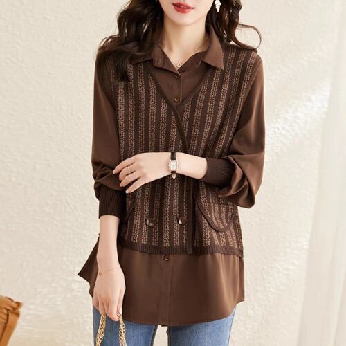 初回送料無料 新作レディースファッション フェイク2枚 ニットセーター オシャレ 人気トップス