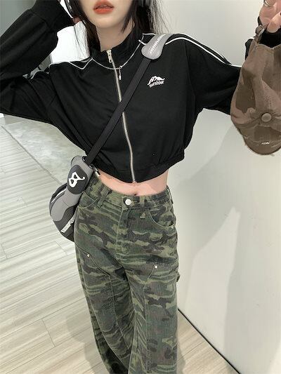 2024 秋 韓国 かわいい レディース アウター ブルゾン お出かけ ブラック ライトカーキ アウター長袖セクシートップスサイド冬カジュアルファッション系お出かけフル丈トラック