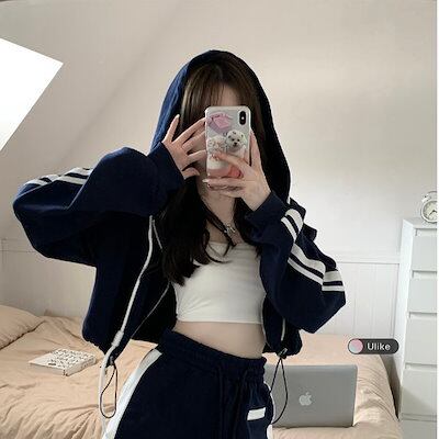 2024 秋 上下2点セット トップス お出かけ 羽織り ショート丈フルラウンドヘム ミニ丈ボトムス ストレート系冬 ゆったりレディースハーフスタイルアップワイドお出かけトラック