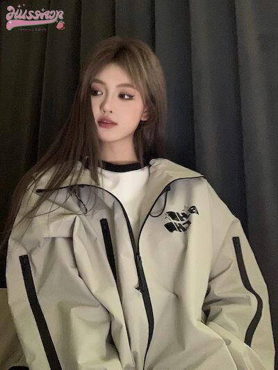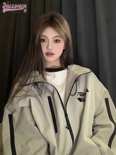 スタイルアップ シルエット フーディー ロゴ ブルゾン アウター フード付き レディース パーカー サイズ ゆったり ライク カジュアル ストリート フル ファッション カジュアル 夏秋冬 かわいい