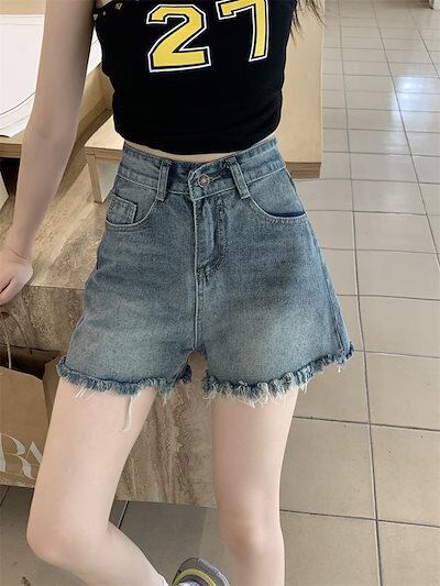 2024 春夏パンツ デニム ジーンズ ショート丈 フリンジ ハイウエスト 美脚効果 脚長効果 細見え 夏 おしゃれ かわいい 韓国ファッション レディース お出かけ