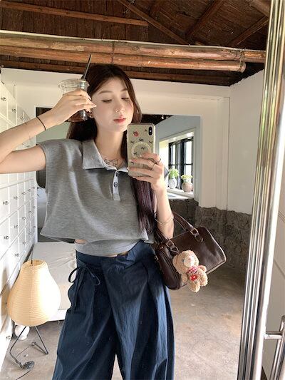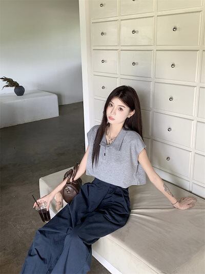 2024夏トップス ポロシャツ 半袖 丈短め 細見え 夏 おしゃれ かわいい 韓国ファッション レディース お出かけ