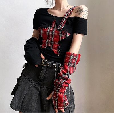 2024春秋 トップス 半袖 可愛い 韓国 Tシャツ ロンT タイト 肌見せフィット 夏 女っぽレディースギンガムチェックファッション系ショート おしゃれ カジュアルセクシー カバー きれいめ付きT星