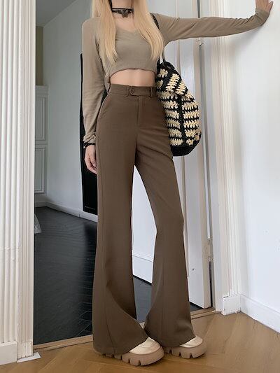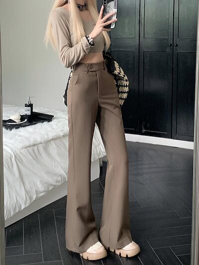 2024 春秋 パンツ モップパンツ ロングパンツ ワイド ハイウエスト 脚長効果 美脚効果 細見え 夏 カジュアルフィット かわいい 韓国系ファッション レディース お出かけ