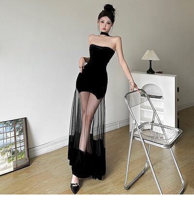 2024夏 透け感 個性的 コーデ ワンピース 女子感レディース色っぽ 女っぽ カジュアルファッション 秋きれいめ大人上品お姉さん襟とフレンチネック可愛さUP型アップ