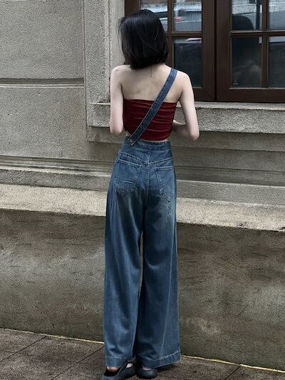 コーデ完成!サロペット 古代のデニムバックパックズボン女性2024薄くて汎用性の新しい韓国語バージョン 韓国ファッション
