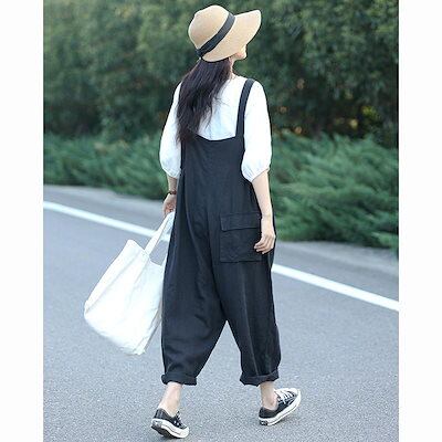 コーデ完成!サロペット 女性の夏のバックレスパンツ綿麻ルーズカジュアルパンツワイドレッグパンツ 韓国ファッション
