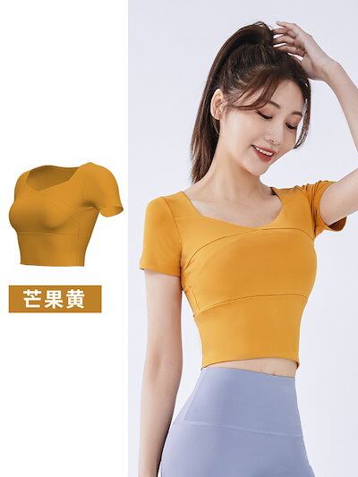 おしゃれヨガウェア チェストパッド付きランニングタイトヨガショートスリーブ レディース 韓国