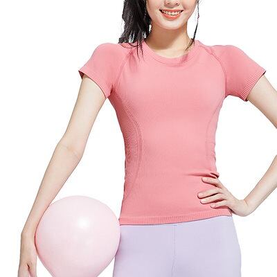 おしゃれヨガウェア お家ヨガウェア 春夏新作 レディース 半袖 丸首 スポーツ Tシャツ ランニングフィットネス トップス 通気性 シェイプ ヨガ半袖 韓国