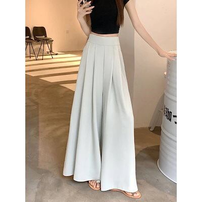 レディースワイドパンツ2024新型韓国版デザイン感プリーツパンツスカートハイウエストダウンで痩せ見えカジュアルキュロット女流