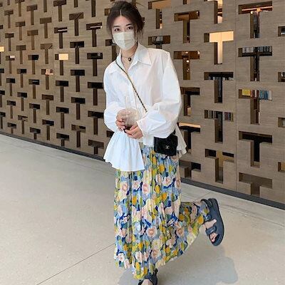 新作 おしゃれ ゆったり 大きいサイズ スカート ロングスカート プリーツスカート レディースファッション 花柄スカート 着痩せ 可愛い マキシスカート プリーツスカート
