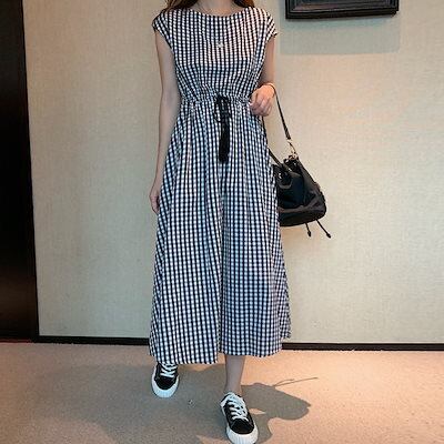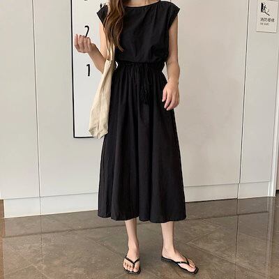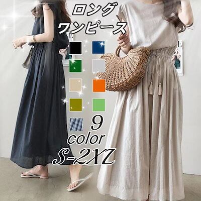 ロングワンピース 夏 半袖 コットン ゆったり 無地 ベルト付き 体型カバー Aライン おしゃれレディース