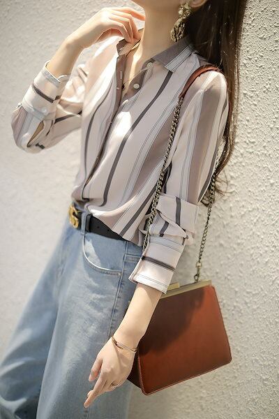 【3日以内出荷】今っぽシアーシャツシアーシャツ Tシャツ 秋 長袖ブラウス/ ストライプシャツ着痩せ上着レースVネックカジュアル 長袖シャツブラウス 韓国ファッション プブラウス レディース