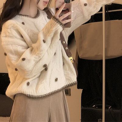 期間限定優しい風モチモチ甘いセーター女2023秋冬新作ゆったりとした色のデザイン感長袖ニットトップス