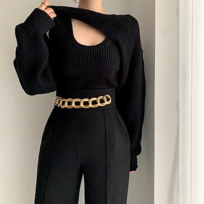 期間限定 韓国2024早秋気品身だしなみニットベストカジュアルアウターショート丈セーターブラウス2点セット女