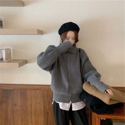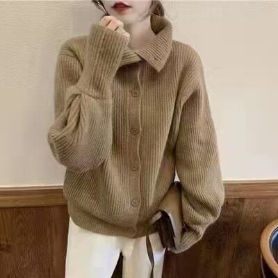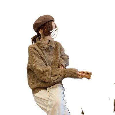 ベーシックニット 2024年秋冬デザインセンスだるい風カーディガンゆったり外着セーターコート婦人ハイネックニットトップスブーム レディース