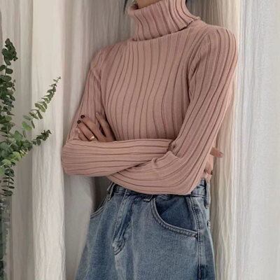 ベーシックニット 韓国の人気ニット 半タートルネックセーターハーフハイカラーのプルオーバーソリッドカラー レディース