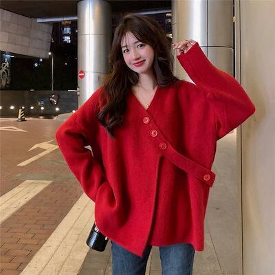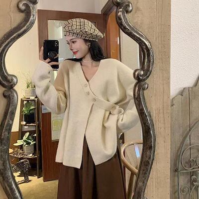 ベーシックニット 2023オーバーサイズのけだるい風vネックセーターの冬のデザイン感小衆シックトップスゆったり長袖ニットカーディガン
