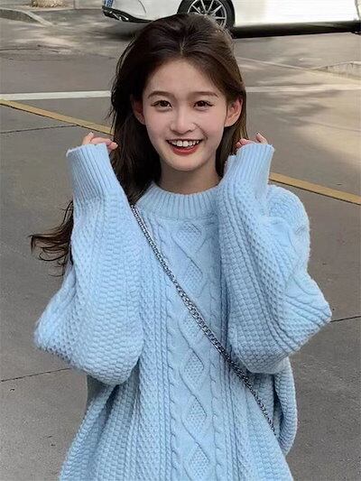 2024優しい風グリーン麻の丸首セーター女秋冬厚手ゆったりゆったりモチモチ甘いニットトップス