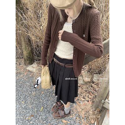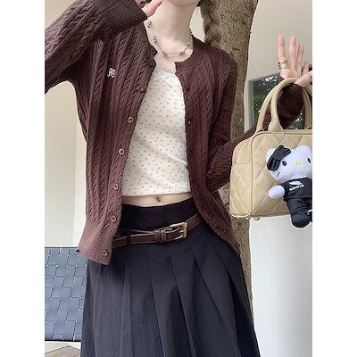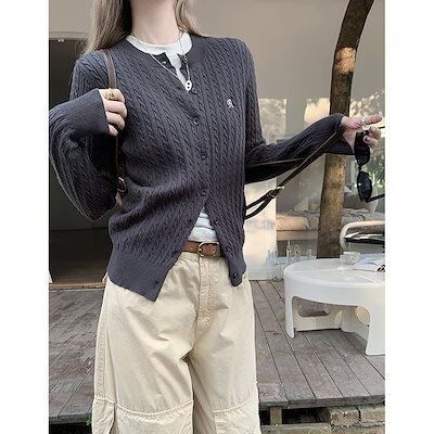ベーシックニット 麻の長袖ニットカーディガンレディース秋の韓国版2023新デザインフィットスリム刺繍セーターコート