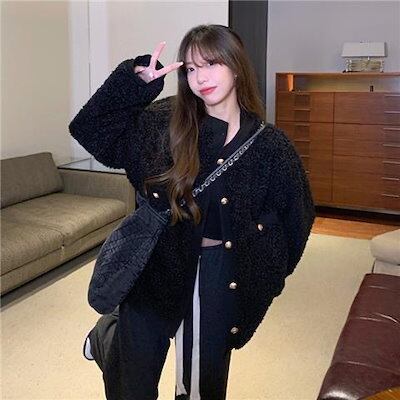 クリスマス ジャケット 冬 小香風 ブラッシュトップス アウター 気質 流行り フェイクカシミア プラッシュ ウォーム 色切り替え ゆったり 厚手 レディース 着やせ