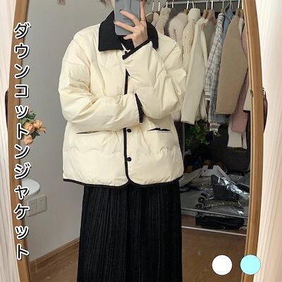 冬 ダウンコットンジャケット コート 韓国ファッション クリスマス デザイン 切り替えコーデュロイ 開襟 厚手 ジャケット アウター カーディガン