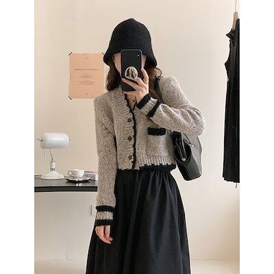 ベーシックニット 小香風雰囲気ショートカーディガンセーター女性の朝秋風ファッションニットコートトップスニットカーディガン