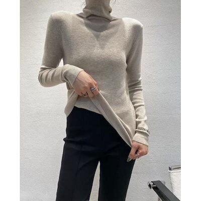韓国ファッションレディース ベーシックニット 秋冬タートルネック・ジャンパー あったかニットボトムシャツスリム長袖ソフトトップス