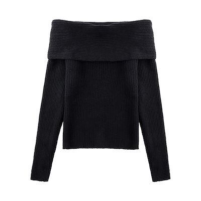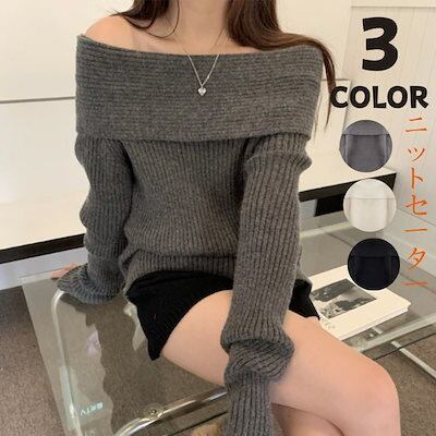 韓国ファッションレディース ベーシックニット 長袖ボートネックセーター