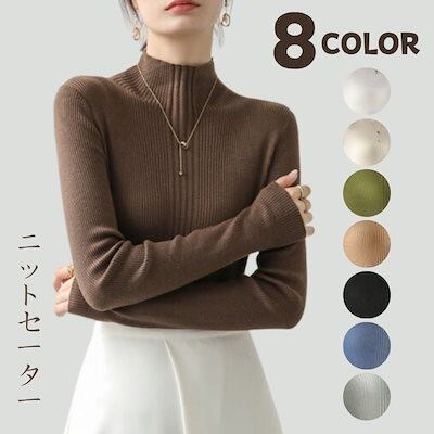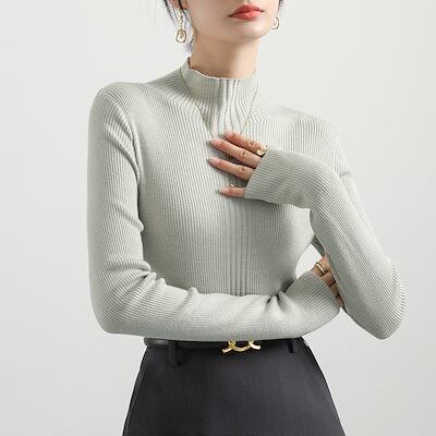 韓国ファッションレディース ベーシックニット ニットセーターレディースセーター秋冬無地長袖プルオーバーハーフハイネックボトムシャツ