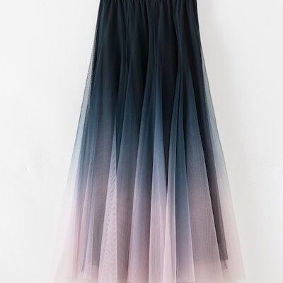 ロングスカート グラデーションチュールスカート ハイウエストA字半身スカートミディアム丈スカート プリーツスカート