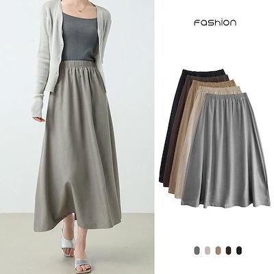 レディース スーツスカート ハイウェスト カジュアル セミロング ロングスカート 脚長効果 涼しい 通勤プリーツスカート