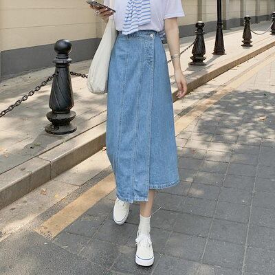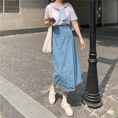 スカート レディース Aライン デザイン感 ハイウェスト 着 痩せ デニムロングスカート