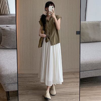プリーツスカート レディース 無地ストリーミングガーゼスカート 夏ハイウエスト着痩せセミロングスカート