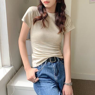 ショルダーTシャツ レディース 半袖 2024年夏新作tシャツ 半袖 ラウンドネックアメリカンスモールネック海外風ベーシックモデル万能半袖Tシャツ