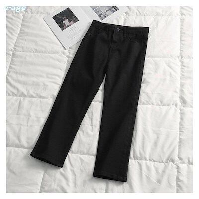 裏起毛パンツ 秋冬 レディース ストレッチ デニム 大きいストレート のびのび 裏フリース ぬくぬくパンツ 8分丈 9分丈 黒 白