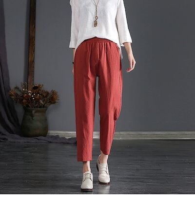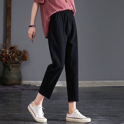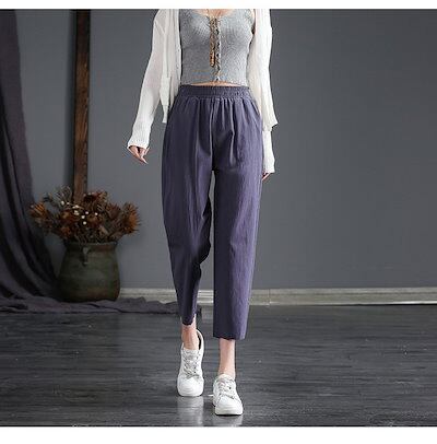綿麻九分パンツゆったりビッグサイズカジュアルパンツ接触冷感ボトムスリネンパンツファッショジョガーパンツスラックスパンツワイドパンツ