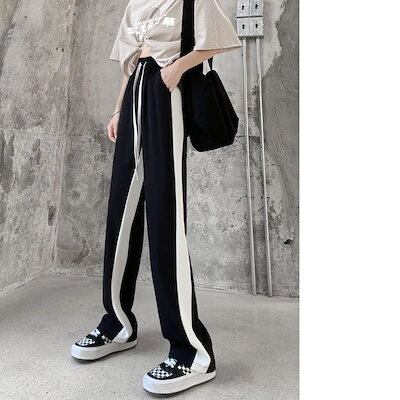 接触冷感ボトムススーツストライプのジャージジョガーパンツスラックスパンツワイドパンツ