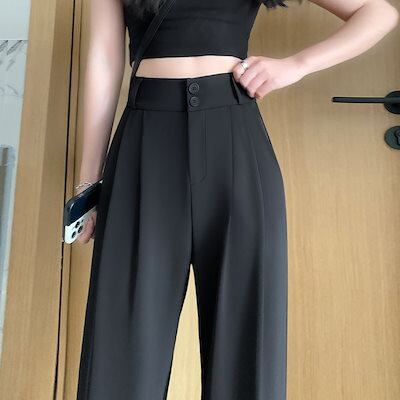 スーツカジュアルな黒のストレートパンツ s-3xlジョガーパンツスラックスパンツワイドパンツ