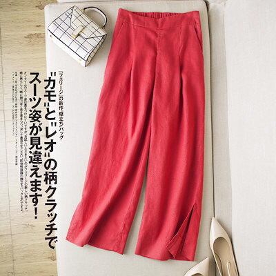 接触冷感ボトムスコットンリネンパンツルーズプラスサイズワイドレッグパンツジョガーパンツスラックスパンツワイドパンツ