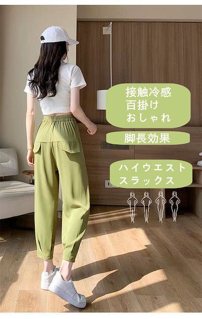 スラックスパンツ レディース ズボン 脚長効果 百掛け 着痩せ ハイウエストスラックスパンワイドパンツ