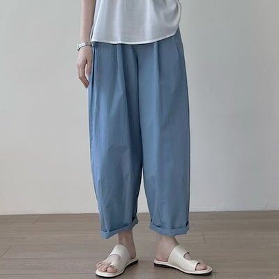 韓国ファッションゆったり スラックスパンツ レディース ズボン 脚長効果 百掛け 着痩せ ハイウエストスラックスパンワイドパンツ