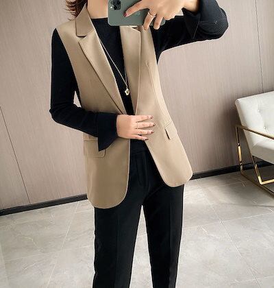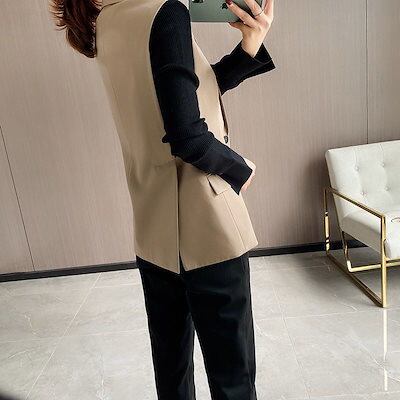 2024 新作Vネック 気質 通勤 ロングベスト トップス アウター ゆったり 百掛け カジュアルおしゃれ ベストスーツ 袖無しノースリーブベスト