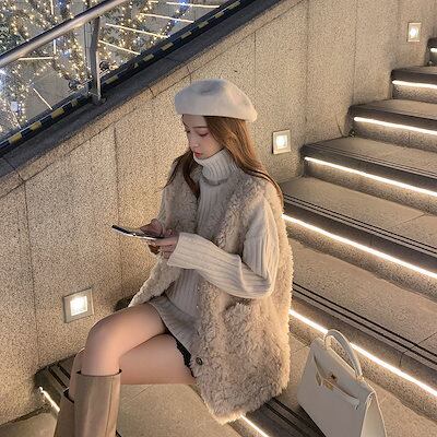 秋アウターベスト 気質 オールマッチ 厚手 秋 冬 ラムズウール ジャケット ひと足お先にボアフリースで決まり!