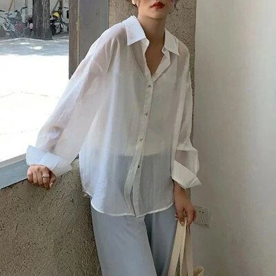 バックリボンシアービッグシャツ デザイン シアーシャツ韓国 着痩せ 襟付き 大きい セーラー レディースファッション トップス ブラウス シャツ レディース 洋服 女性 おしゃれ 可愛い かわいい