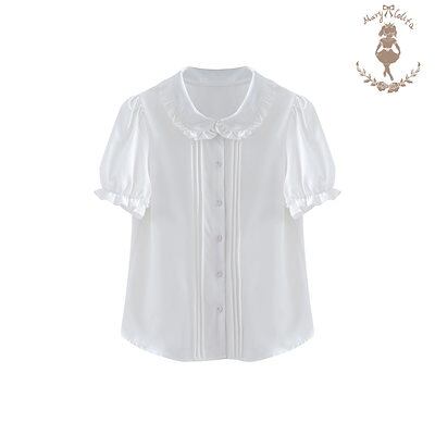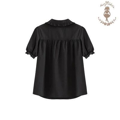 2024新入荷ロリータシャツブラウス シャツ レディース レディース 着痩せ 夏の半袖軽くて通気性のあるベビードールの襟の菌類縁取りのルーズなパフスリーブシャツを着ています