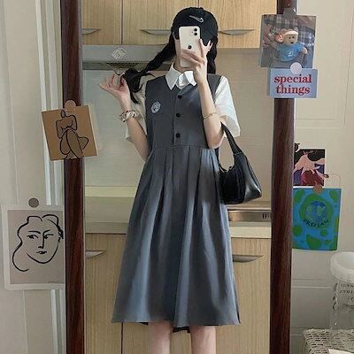 制服 2024 新入荷 JK 2点セット シャツ+ストラップスカート 可愛い 制服スカート 着痩せ スクールベストサンタコスプレ